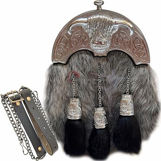 High-Quality Semi-Dress Sporran: Elevate your kilt attire with the Buffalo Cantel Sporran, featuring an antique unique buffalo design.100% Genuine Leather: Crafted from genuine soft leather for enduring quality.Adjustable Chain Belt: Fits waist sizes from 30 to 52 inches, providing versatility.Lifetime Rust-Free Warranty: Your investment is protected with a lifetime warranty.Elegant Design: Embossed highland cow on tassel caps adds an extra touch of sophistication.Imported: This exceptional sporran is imported to meet the highest standards.Button Closure: For easy and secure fastening.Care Instructions: Maintain its quality with a wet wipe clean.
