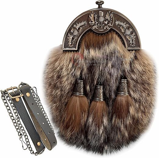 High-Quality Full Dress Sporran: Elevate your kilt attire with the Thistle Cantel Full Dress Sporran, featuring a unique brown thistle cantel.100% Real Leather: Crafted from genuine soft leather for enduring quality.Adjustable Leather Chain Belt: Fits waist sizes from 30 to 52 inches, offering versatility.Elegant Tassels: Adorned with three original tassels.Imported: This exceptional sporran is imported for the highest standards.Wet Wipe Clean: Easy maintenance with a wet wipe.Unique Design: Features a brown thistle cantel for a distinctive touch.