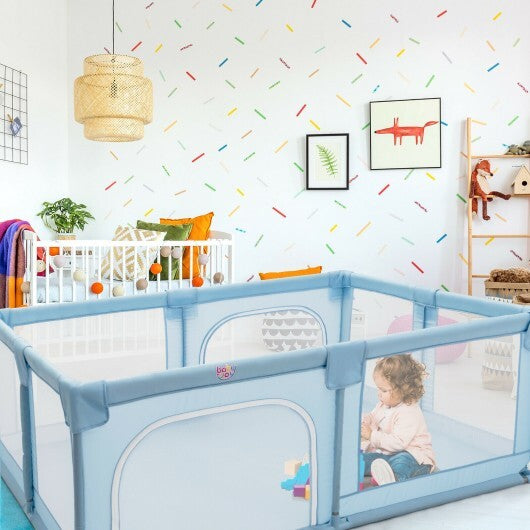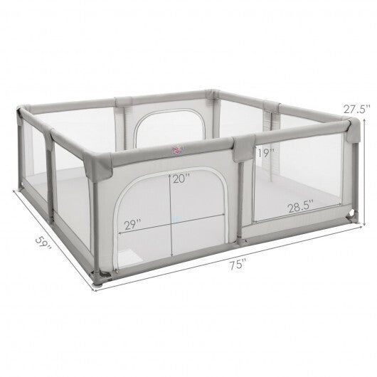 75 x 59 Inch Large Baby Playpen with Breathable Mesh and Zipper Doors-Gray