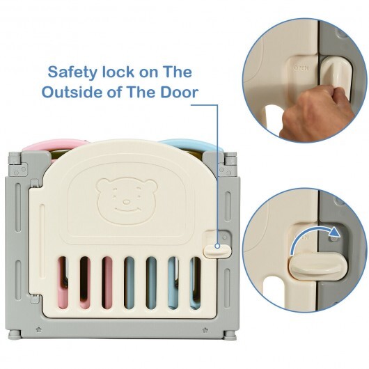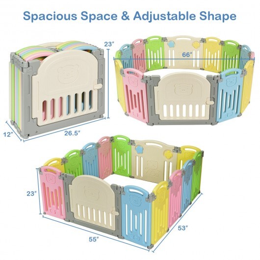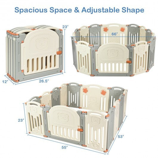 Foldable Baby Playpen 14 Panel Activity Center Safety Play Yard-Beige