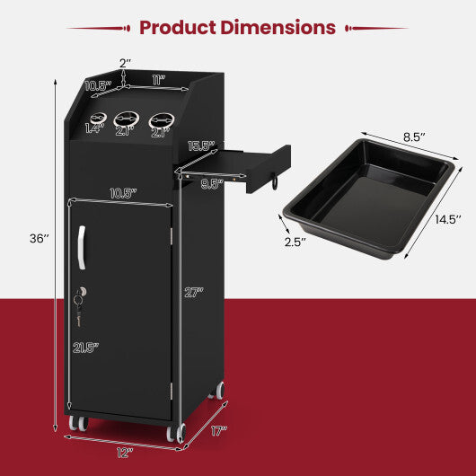 Salon Trolley Cart 360 Rolling Tool Cart Mobile Storage Station with 4 Lockable Wheels-Black
