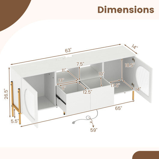 TV Stand for 70 Inch TV with Power Outlets Drawers and Open Shelves-White