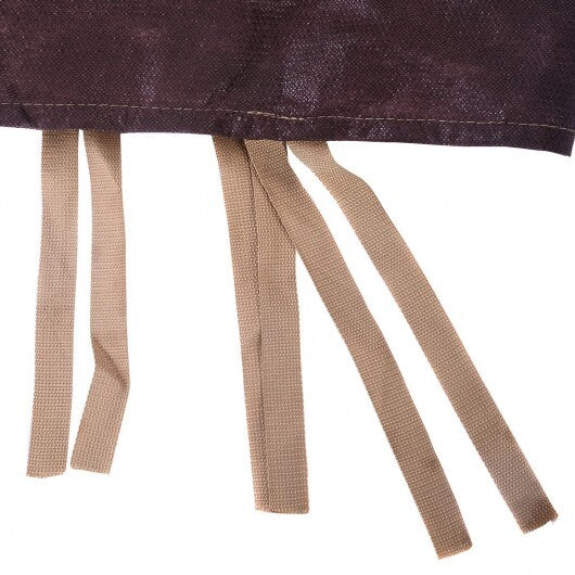 It provides protection for your outdoor furniture from most bad weather and dirt. Moreover the material is aging resistance it will not fade and tear easily providing long-lasting use. The table protection can cover a 72" table and 8 chairs mostly. There are 6 click-cloth straps to keep the cover in place even if the worst weather. Besides the color is tan and brown which is not easy to show dirty. If dirty it is easy to clean with a wet cloth.