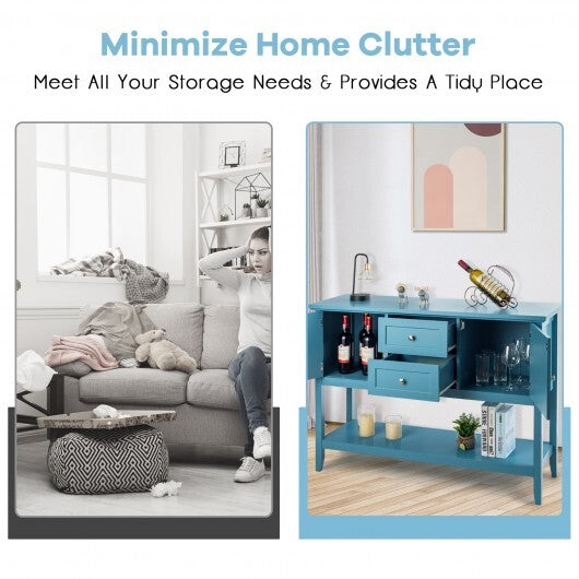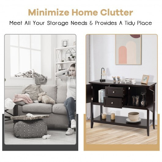 Wooden Sideboard Buffet Console Table with Drawers and Storage-Brown