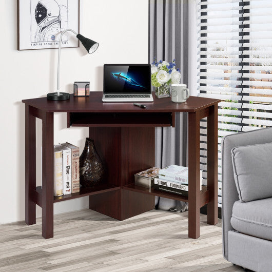 Made of wood it is sturdy and durable. Corner design helps you maximize your limited floor area. It has a large opening drawer to store your keyboard and two opening storage space underneath for host computer miniprinter books CDs and so on. It can be used as study desk office desk home office desk workstation and computer desk. This desk compliments any room and is a great addition to any home office.