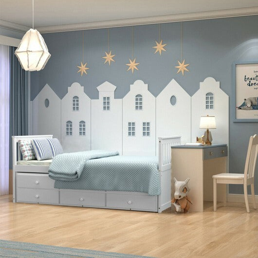 Twin Captain's Bed with Trundle and 3 Storage Drawers-Walnut