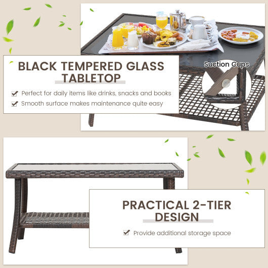 4 Pieces Outdoor Rattan Conversation Set with Protective Cover