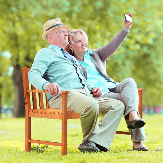 2-Seat Patio Wood Bench with Cozy Armrests and Backrest