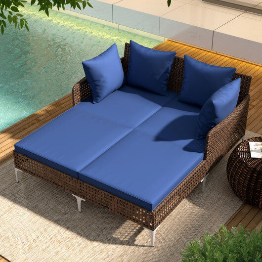 Outdoor Rattan Double Daybed Wicker Chaise Lounge-Brown
