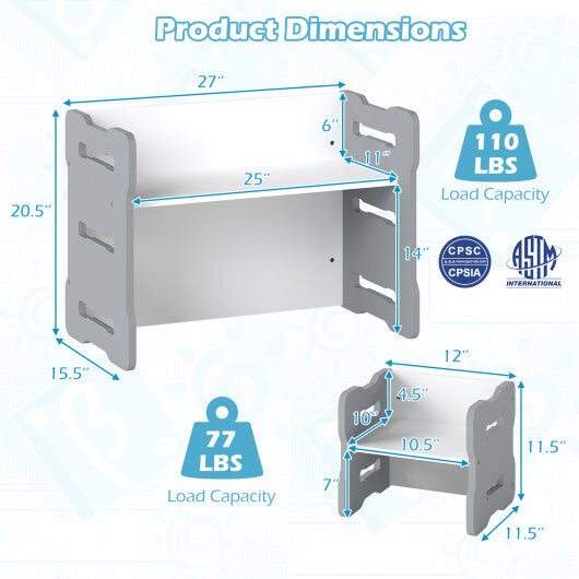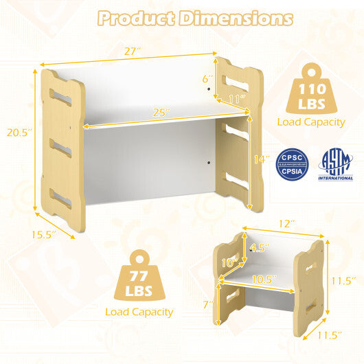 3-Piese Toddler Set with 2 Stools and Activity Table-Natural