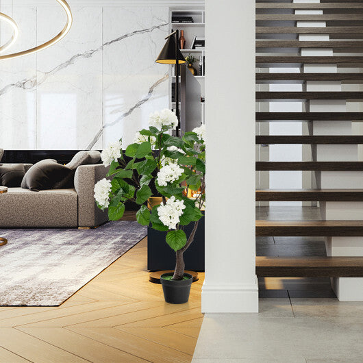 Artificial Hydrangea Tree Fake Floral Plant with 11 White Flowers-White