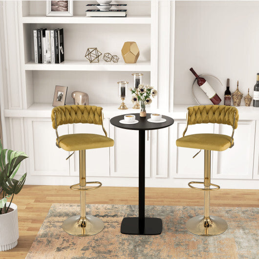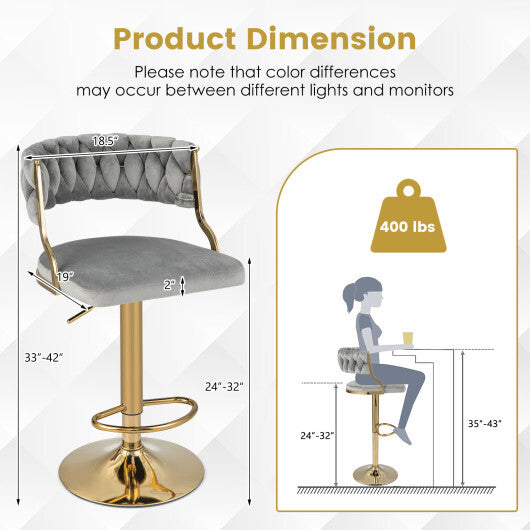 Swivel Barstool with Woven Back Set of 2 for Kitchen Island Cafe-Gray
