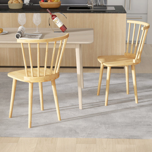 Windsor Dining Chairs Set of 2 Rubber Wood Kitchen Chairs with Spindle Back-Natural