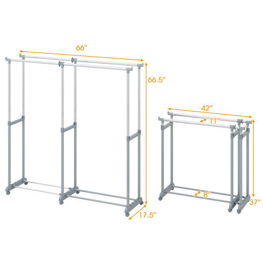 Double Rod Clothes Rack Heavy-Duty Metal Garment Rack