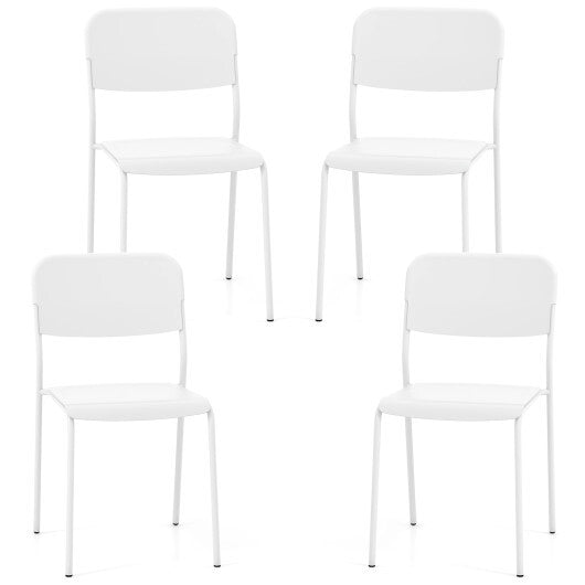 Modern Dining Chairs Set of 4 with Tilted Backrest and Sturdy Metal Legs-White