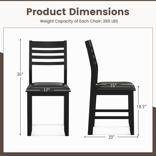 Wooden Dining Chair Set of 2 with Rubber Wood Frame and Padded Cushion-White