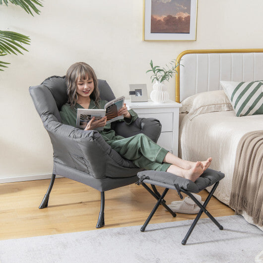 Modern Accent Sofa Chair with Folding Footrest and Side Pocket-Beige