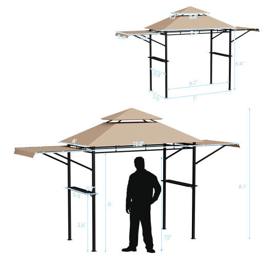 13.5 x 4 Feet Patio BBQ Grill Gazebo Canopy with Dual Side Awnings-Beige