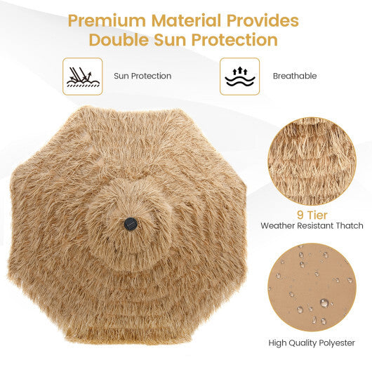 9 Feet Solar Powered Thatched Tiki Patio Umbrella with Led Lights.