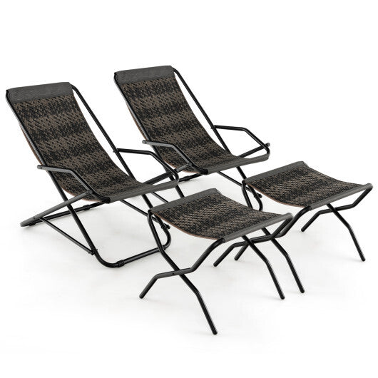 Patio PE Wicker Rocking Chair with Armrests and Metal Frame-Gray