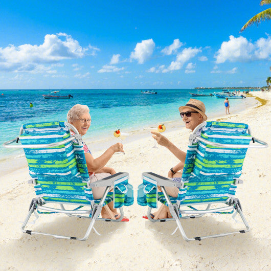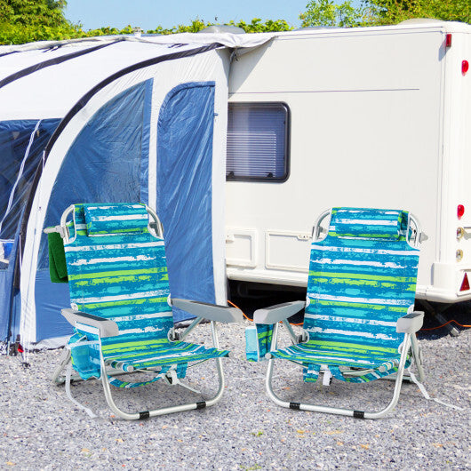 Foldable Backpack Beach Chair with Cup Holder and Storage Pockets Set of 2-Pink