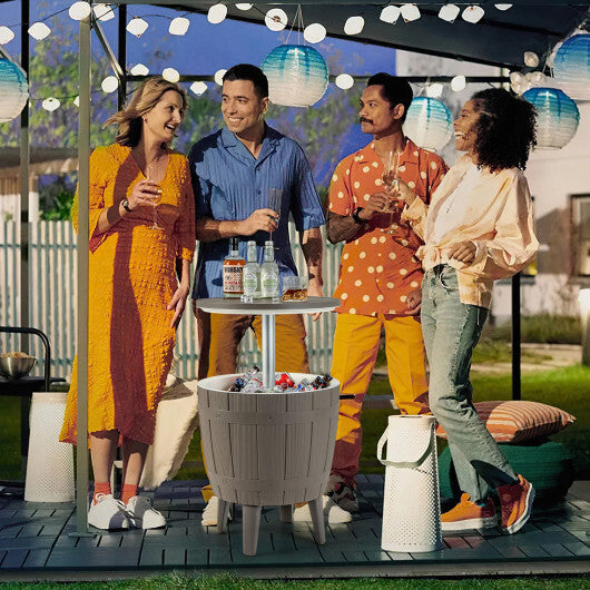 10 Gallon Cooler Bar Table Outdoor Coffee Table Ice Bucket with Telescopic Tabletop for Beer and Wine-Brown