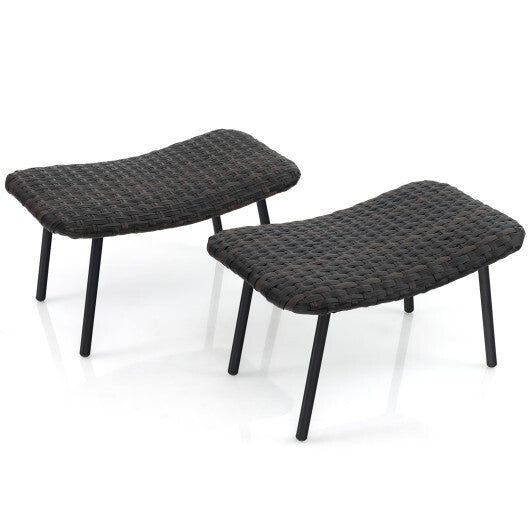 All Weather Outdoor Ottomans Set Patio Footrest Seats Set with Sturdy Metal Legs -Brown