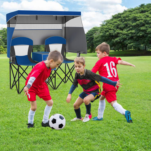 Double Beach Chair with Adjustable Canopy and 3 -Side Shading Curtains-Navy
