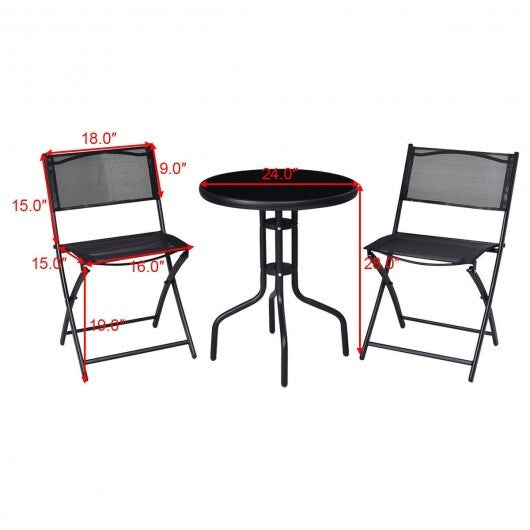 3 Pieces Folding Bistro Table Chairs Set for Indoor and Outdoor
