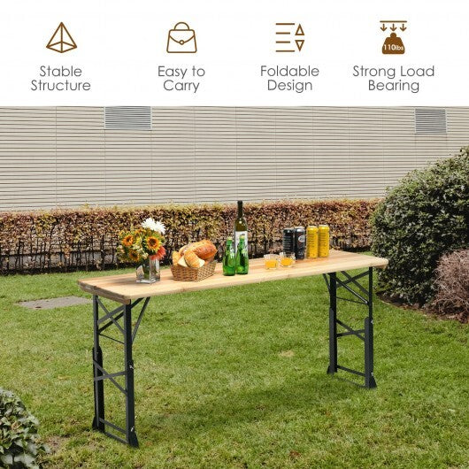 66.5 Inch Outdoor Wood Folding Picnic Table with Adjustable Heights