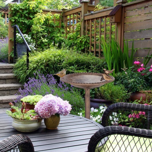 Antique Gold Freestanding Pedestal Bird Bath Feeder