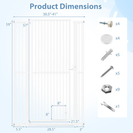 59" Extra Tall Pet Gate Heavy-Duty Metal Cat Gate with Wide Opening-White
