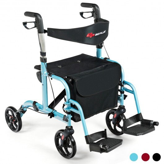 ● 2-in-1 design to serve as a rollator walker or a wheelchair