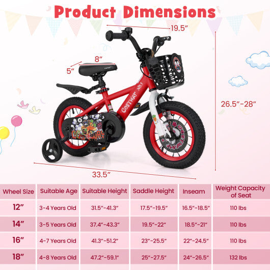 Costway 12 Inch Kids Bike Adjustable with Storage Basket and Double Brake for 3-4 Years Old-12 inches