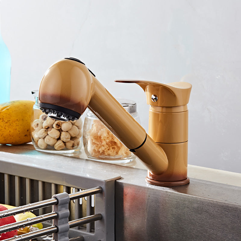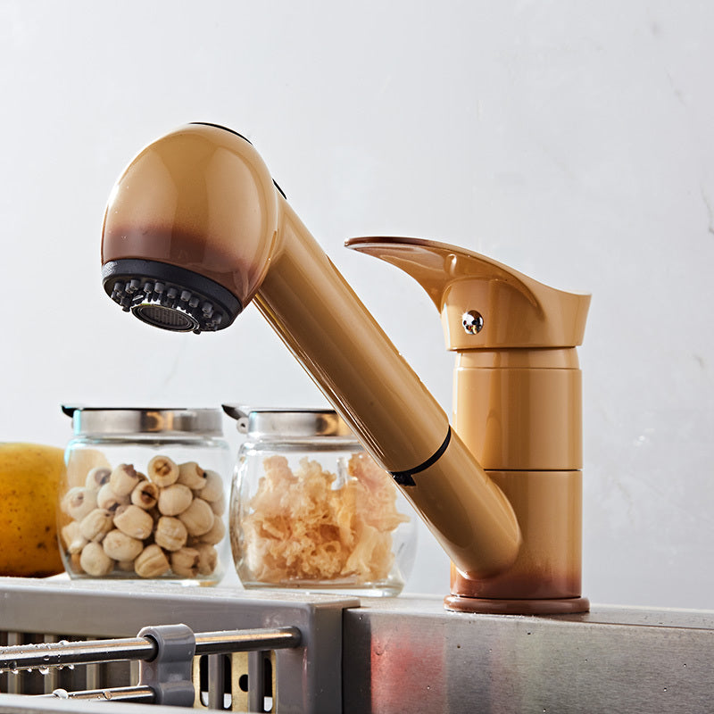 Kitchen Pull Out Cool Painted Finish Flexible Hot and Cold Mixer Taps Deck Mount Swivel
