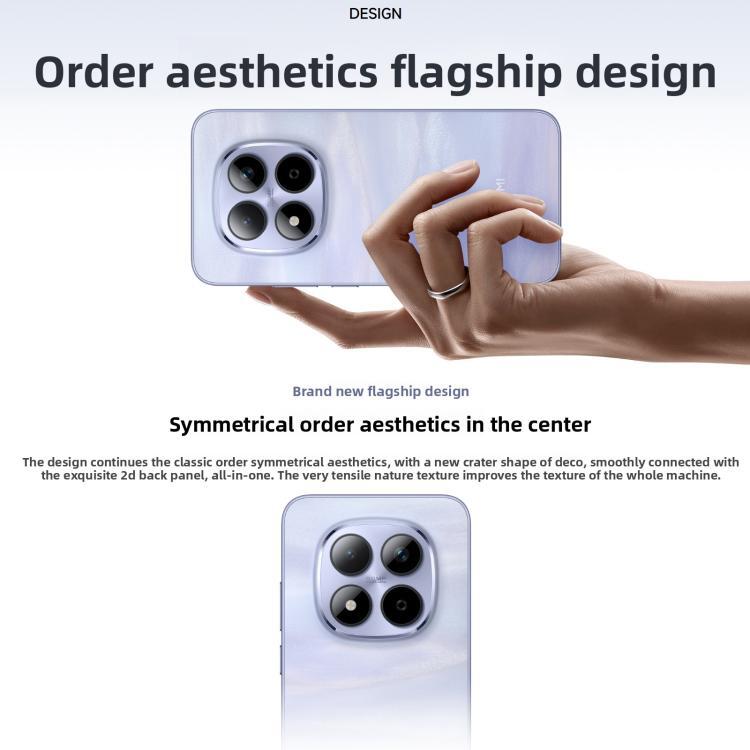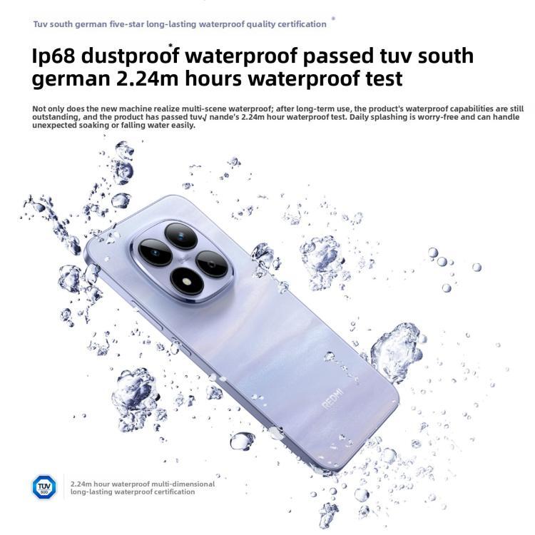 Specifications: 1. CPU: Dimensity 7400-Ultra, octa core, 4nm, up to 2.6GHz; GPU: Mali-G615 MC2 2. Memory Capacity: 8GB+256GB 3. Operating System: Xiaomi HyperOS 2 4. Sensors: Ultrasonic distance sensor, ambient light sensor, electronic compass, accelerometer, gyroscope, infrared remote control, X-axis linear motor 5. Languages: English, Simple Chinese, Traditional Chinese 6. SIM card slot: Dual Nano-SIM card slot 7. Charging Interface: Type-C 8. Battery: 7000mAh non-removable battery 9. Charging Power: 45W wired fast charging, 22.5W wired reverse charging 10. Size: 163.61 x 78.09 x 7.78mm 11. Weight: 210g Screen Display: 1. Screen: 6.83 inch, 2772 x 1280 2. Display frame rate: 120Hz 3. Touch sampling rate: 480Hz-2560Hz Cameras: 1. Rear Camera: 50MP (f1.5, LYT-600) + 8MP 2. Front Camera: 20MP Network Band: 1. 5G: N1/N3/N5/N8/N28a/N38/N40/N41/N48/N77/N78 2. 4G: FDD-LTE: B1/B3/B5/B8/B19/B28A; TDD-LTE: B34/B38/B39/B40/B41/B42/B48 3. 3G WCDMA: B1/B5/B6/B8/B19 4. 2G GSM: GSM850/900/1800MHz Wireless Network: 1. WiFi Protocols: Wi-Fi 6, Wi-Fi 5, Wi-Fi 4,802.11a/b/g, 2.4GHz / 5GHz 2. BT: BT5.4 3. GPS: Beidou, GPS, Galileo, GLONASS, QZSS, A-GPS 4. NFC: Support Package List: 1. Phone x 1 2. Eject Pin x 1 3. Protective Case x 1 4. USB Cable x 1 5. US Plug Charging Adapter x 1 6. Pre-attached Protective Film x 1 7. Package Box x 1 (The actual product shall prevail)