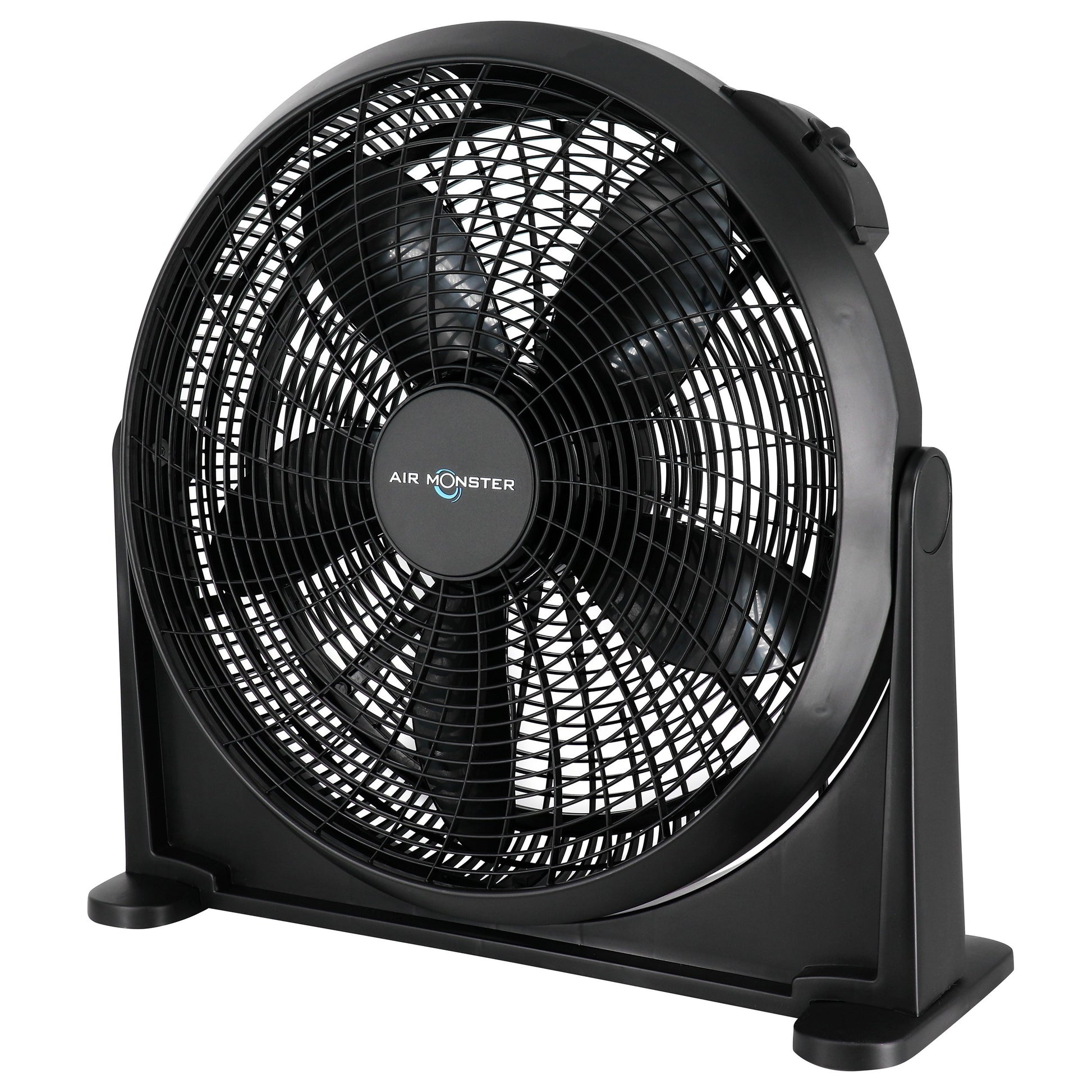 Cool down your favorite spaces with this 20 inch 3 speed fan by Air Monster. This fan is perfect for medium or large sized rooms where high volume air movement is needed. Five wing blade construction with a sturdy base, this fan can be angled up or down at varying degrees to fit whatever circulation you need. Easy access control dial at back gives you three speed options and the built in handle and lightweight design makes this fan perfect to move from room to room as needed. Comes with an optional wall mount feature to save floor space. Comes assembled straight out of the box for no hassle setup, just plug in and enjoy the cooling effect!