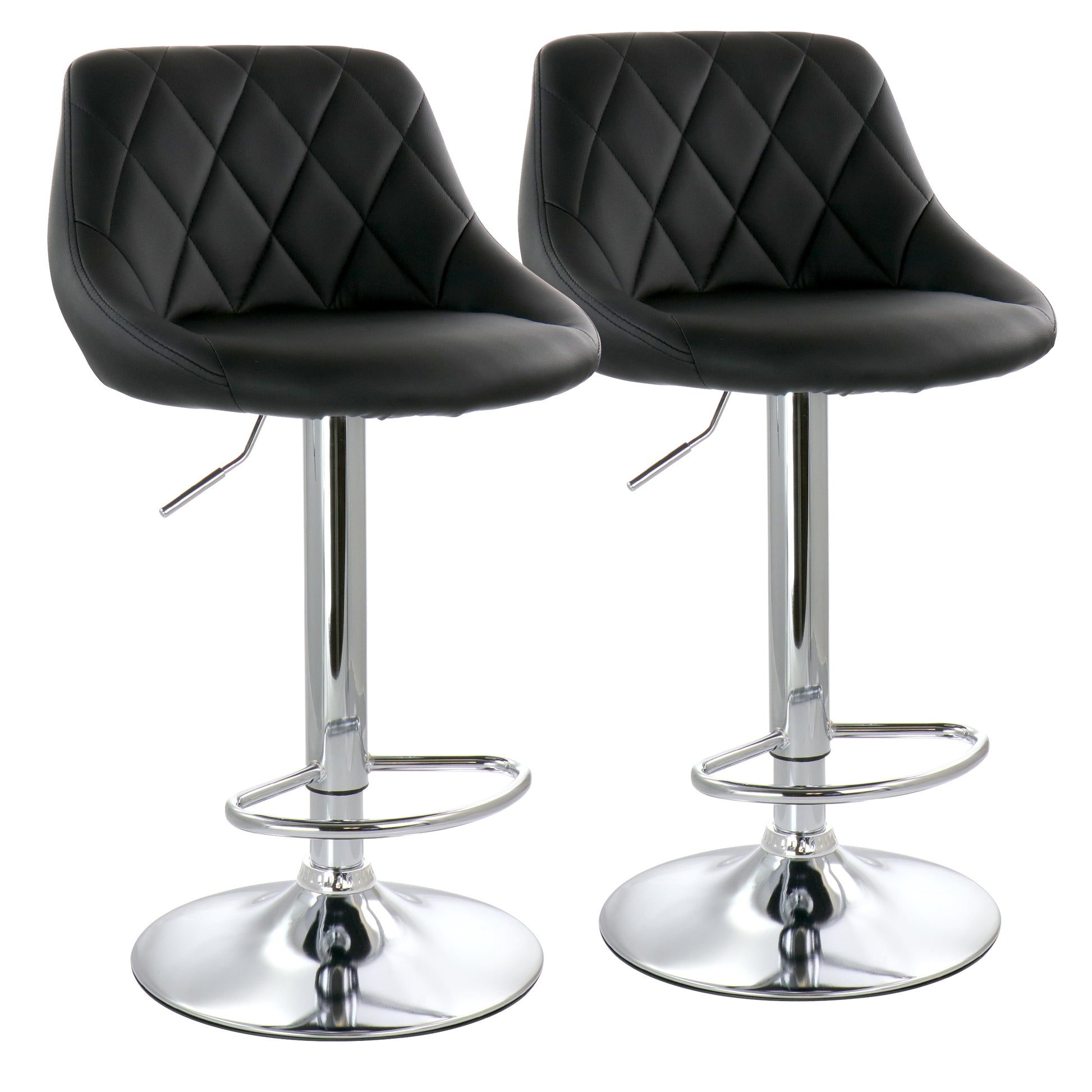 Elama 2 Piece Diamond Stitched Faux Leather Bar Stool in Black with Chrome Base and Adjustable Height