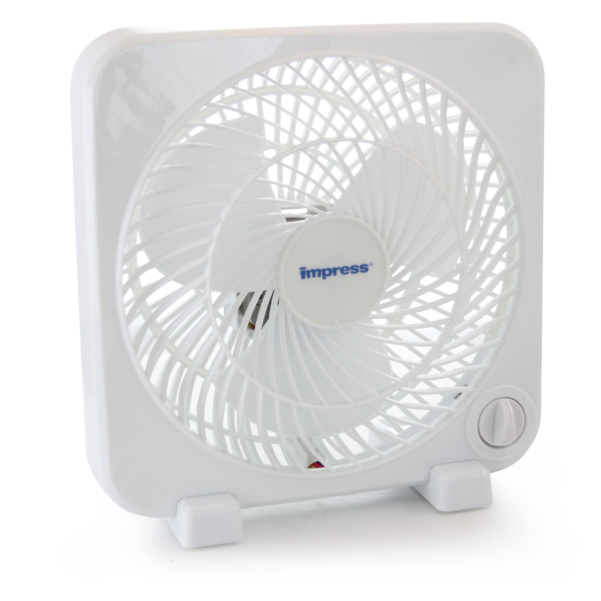 Introducing the Impress 9 Inch Box Fan in White, the ultimate solution for compact and portable cooling needs. With its sleek box-shaped design and pristine white color, this fan effortlessly blends into any space, delivering powerful airflow while adding a touch of modern elegance. Boasting a robust 45W power output, this fan offers three adjustable speeds through its easy-to-use rotary switch control, providing customizable comfort at your fingertips. Whether you're at home, in the office, or on the go, its whisper-quiet operation ensures a tranquil environment, allowing you to stay cool and focused without any distractions. Plus, with no assembly required, you can enjoy instant relief from the heat hassle-free. Stay cool and comfortable wherever you are with the Impress 9 Inch Box Fan White.