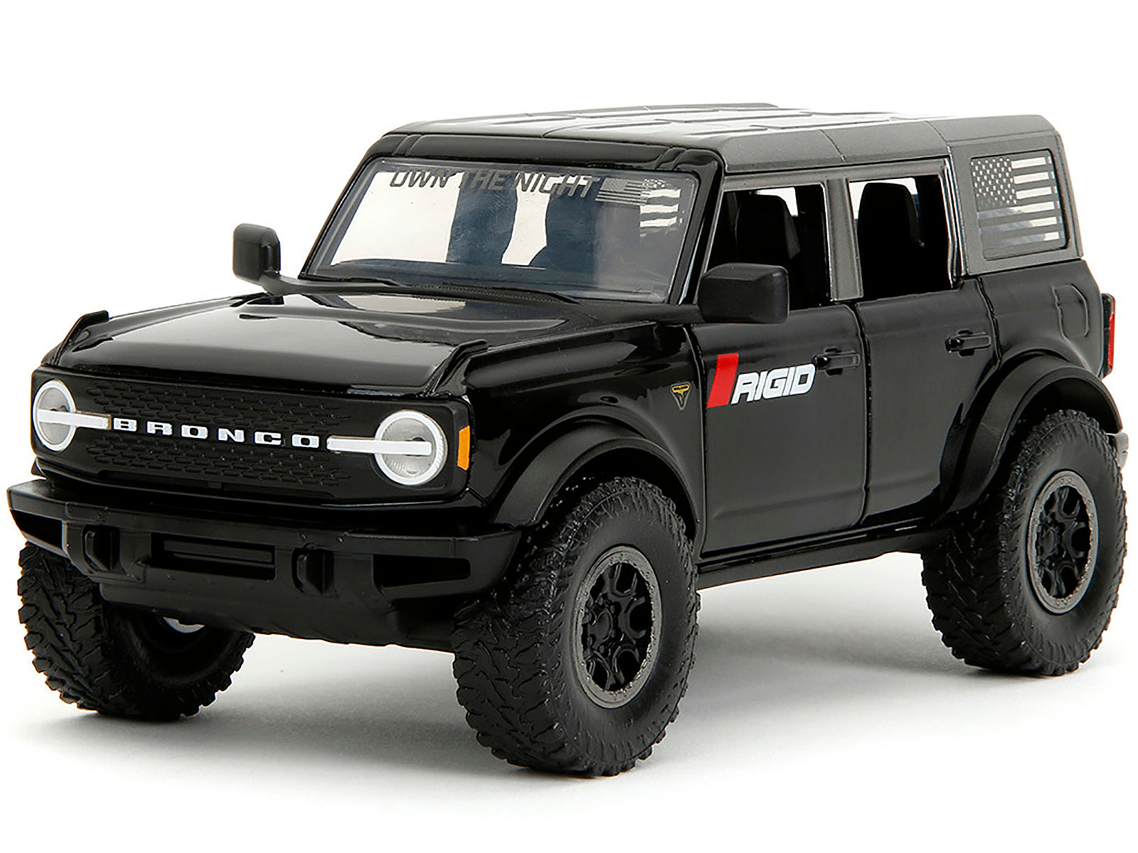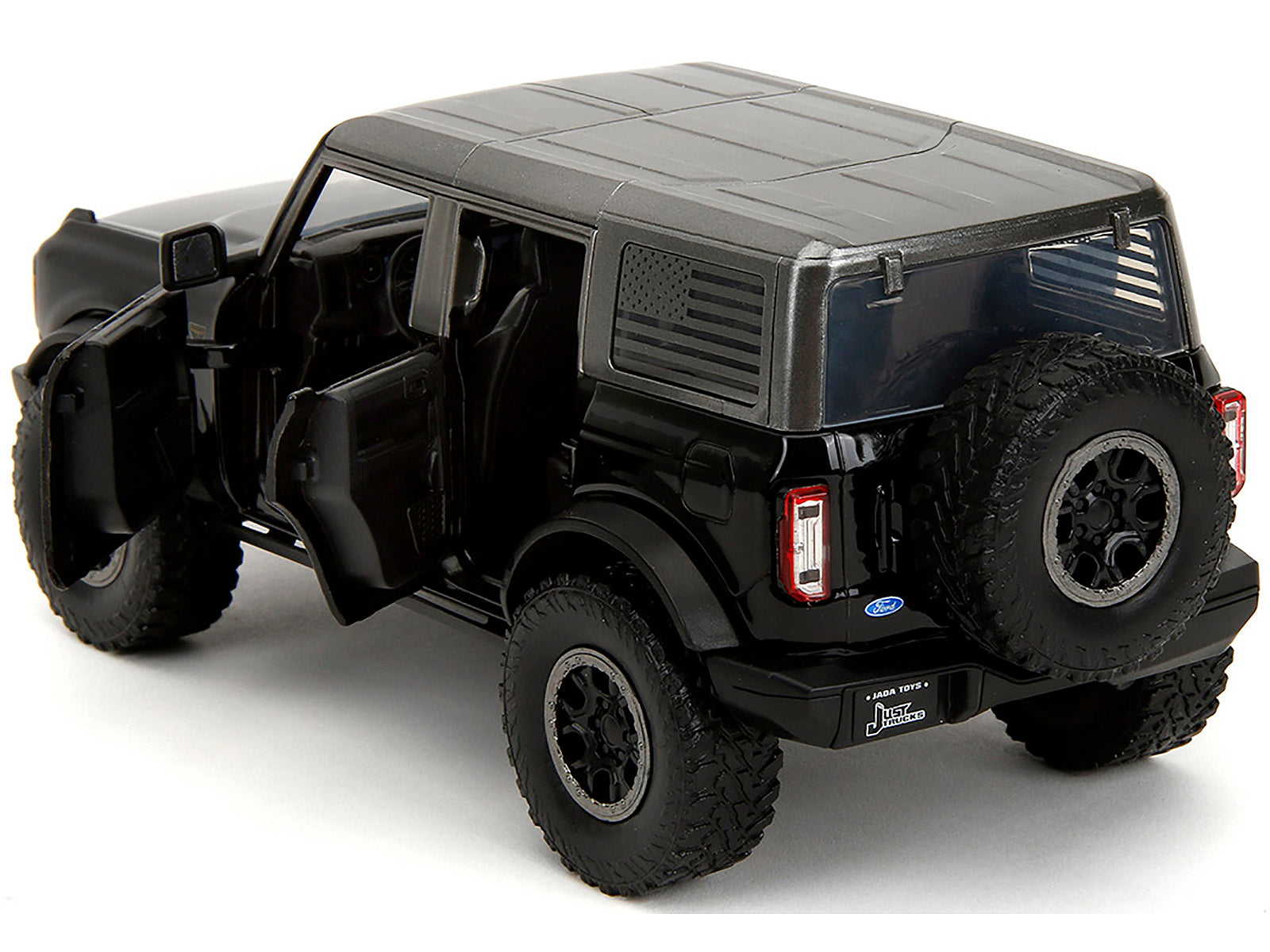 - Brand new 1/24 scale diecast car model of 2021 Ford Bronco Badlands Black "Rigid" with Extra Wheels "Just Trucks" Series die cast model car by Jada.