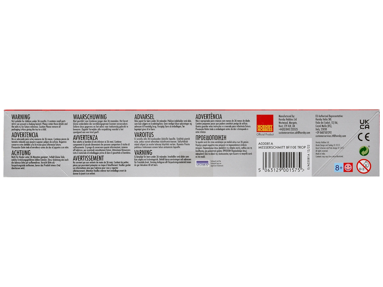 - Brand new plastic model kit of Messerschmitt Bf110E/E-2 TROP Fighter Aircraft with 2 Scheme Options (Level 2) 1/72 plastic model kit by Airfix.