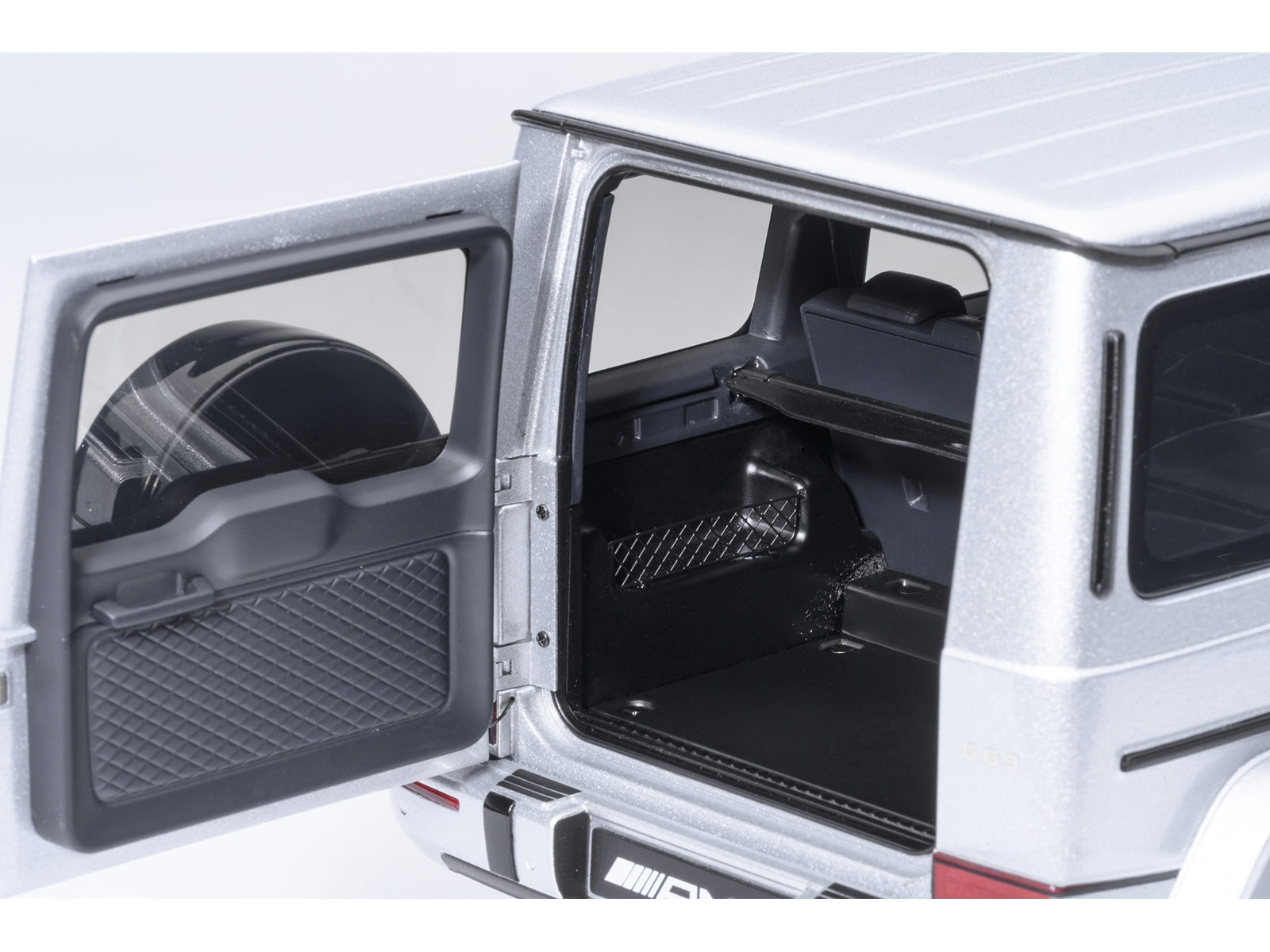 - Brand new 1/18 scale model car of 2019 Mercedes-Benz AMG G63 Iridium Silver Metallic car model by Autoart.