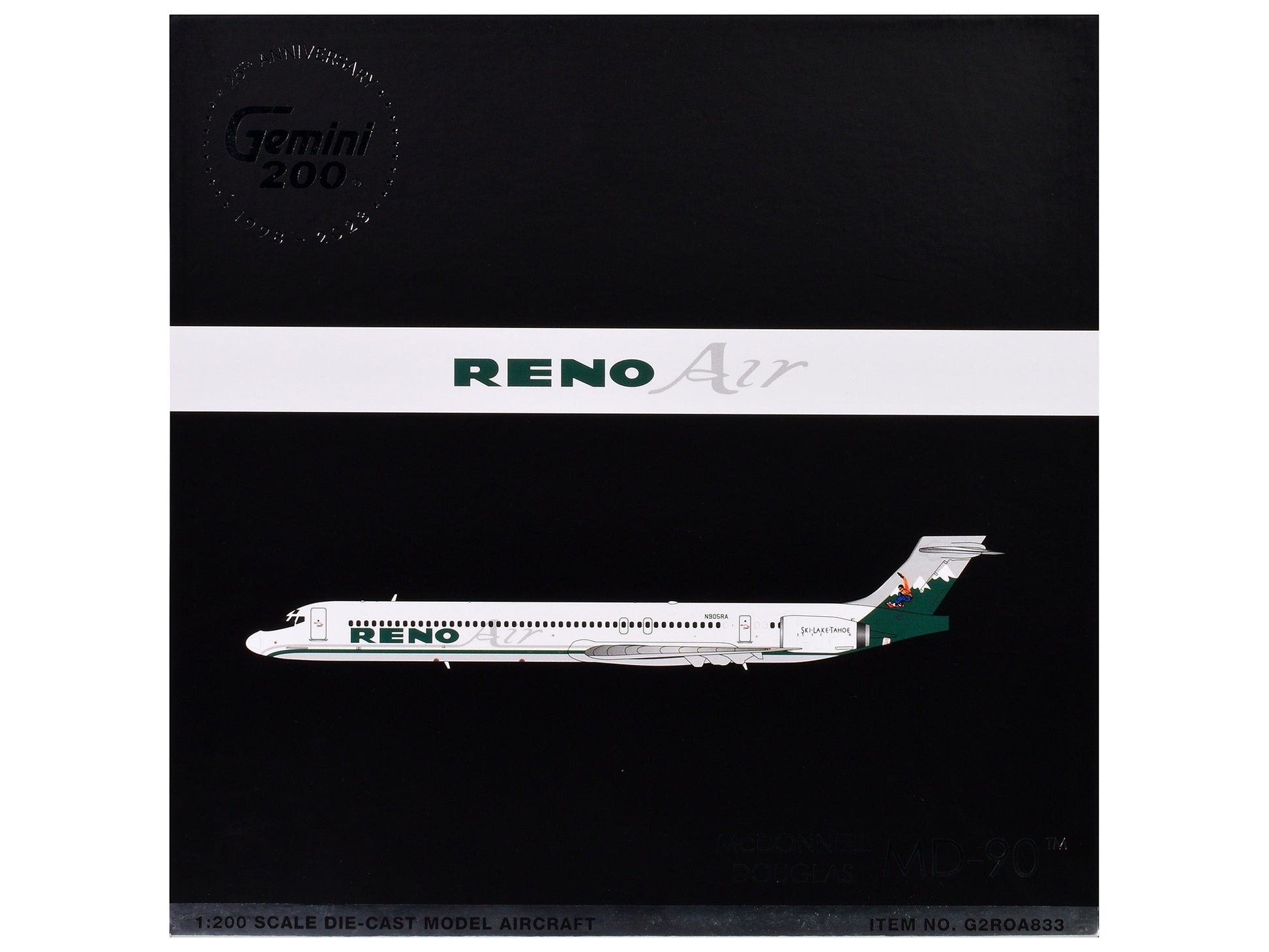 - Brand new 1/200 scale diecast airplane model of McDonnell Douglas MD-90 Commercial Aircraft "Reno Air" (N905RA) White with Green Tail "Gemini 200" Series die cast model by GeminiJets.
