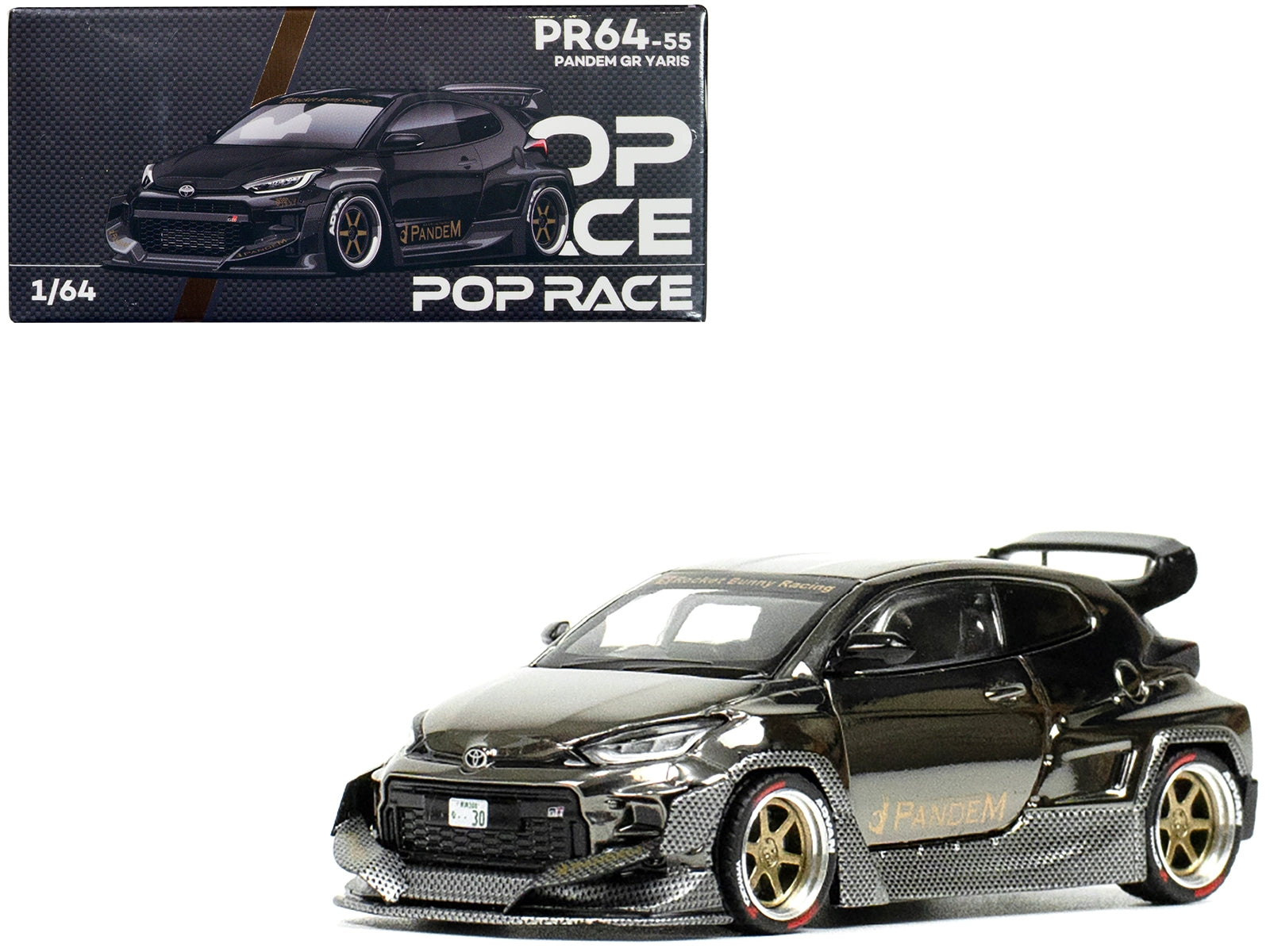 - Brand new 1/64 scale diecast car model of Toyota "Pandem" GR Yaris RHD (Right Hand Drive) Dark Chrome die cast model car by Pop Race.