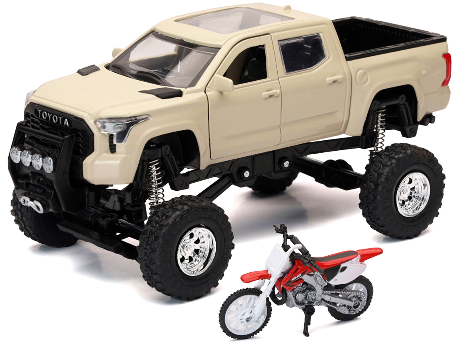 - Brand new 1/32 scale diecast model of Toyota Tundra Pro Pickup Truck Tan and Honda CR250R Motorcycle Red and White "Xtreme Off-Road" Series die cast model by New Ray.