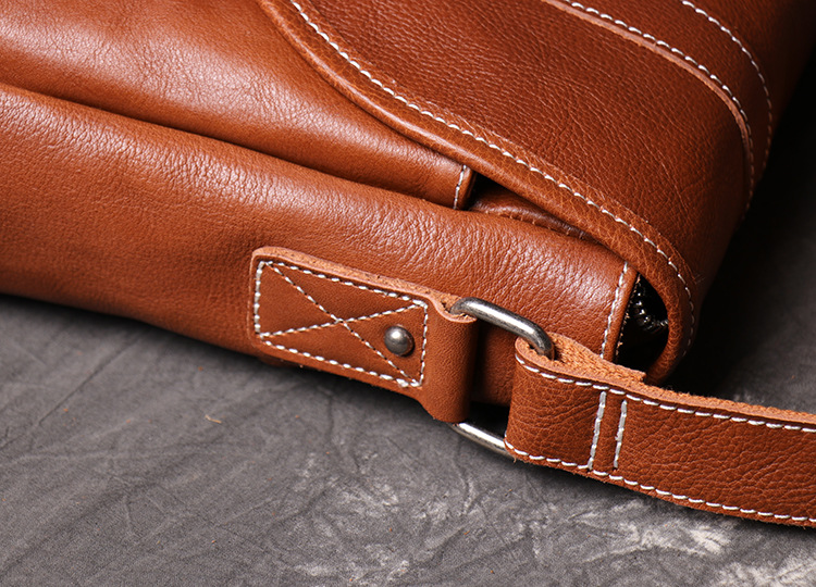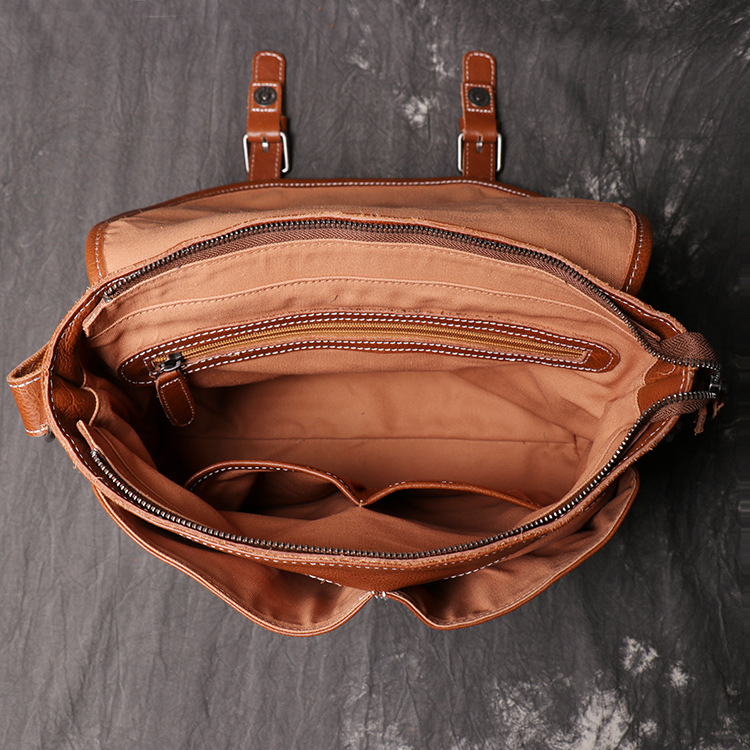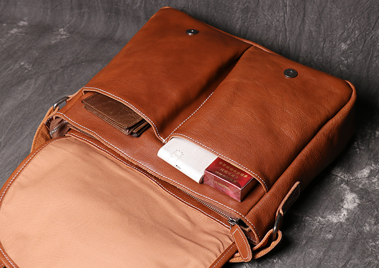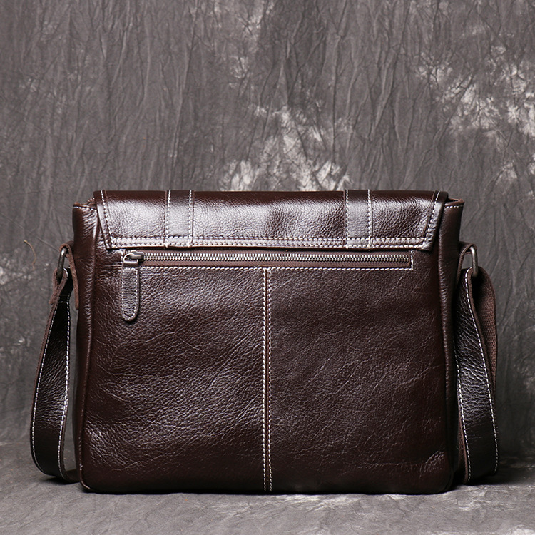 Mens Full-Grain Leather Large-Capacity Shoulder Bag