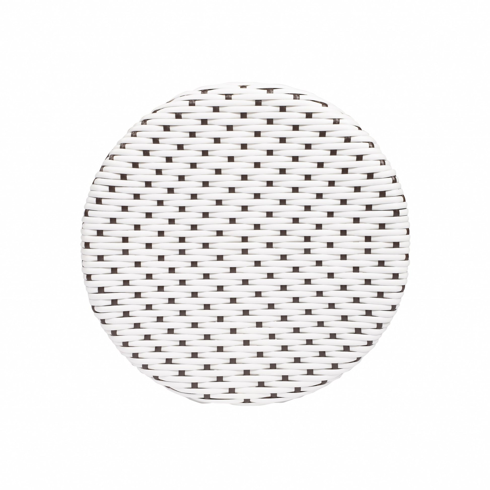 With this 24-inch white and dark brown rattan backless counter height bar chair you can add design and extra seating to your space. A dark brown rattan frame is finished off with a white and brown rattan seat that is the epitome of quality construction and design. The round shape of the seat give this backless chair a fresh and fashionable look. Designed with a footrest for comfort and convenience. 24-inch H x 16-inch W x 16-inch D