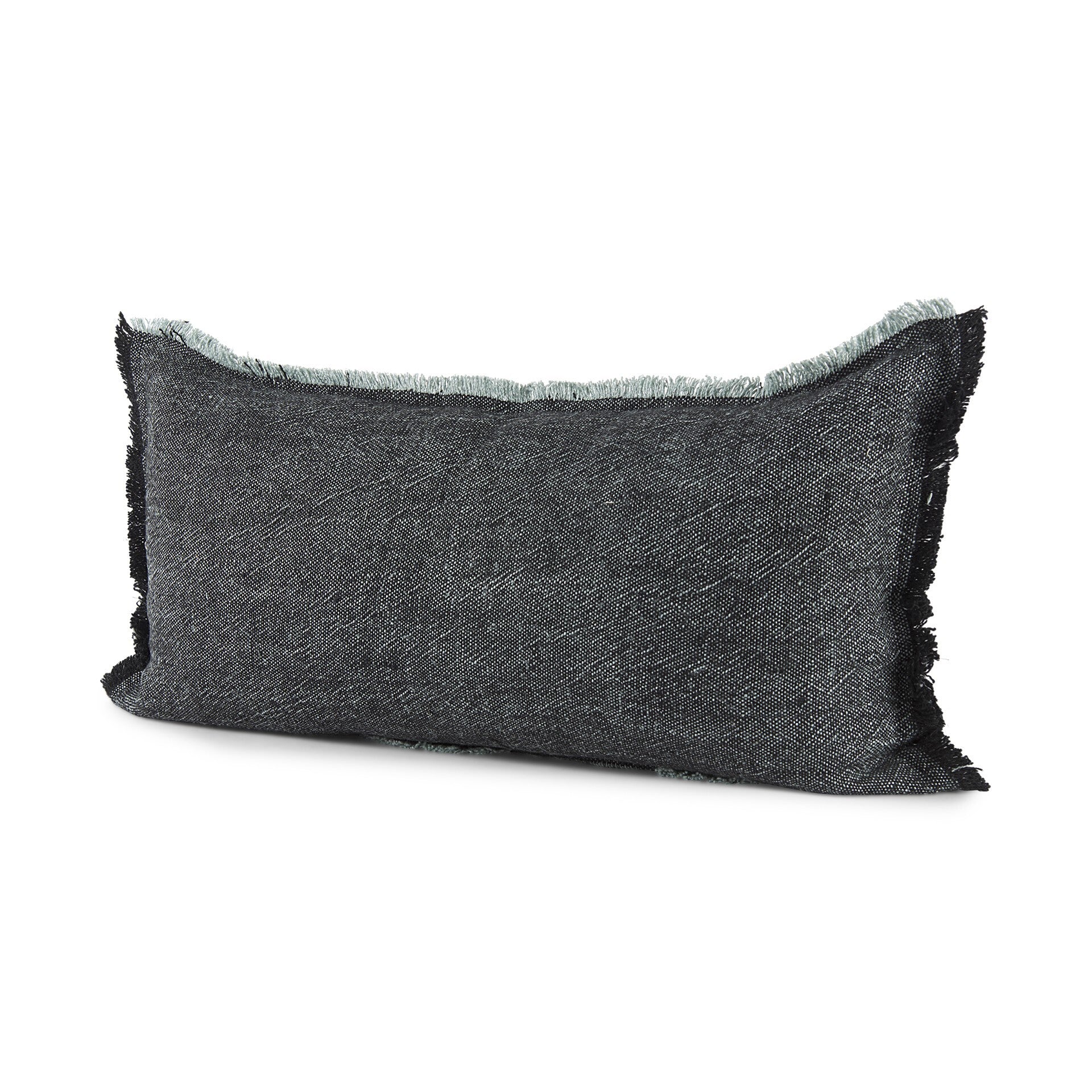 Dark Gray Fringed Lumbar Throw Pillow Cover