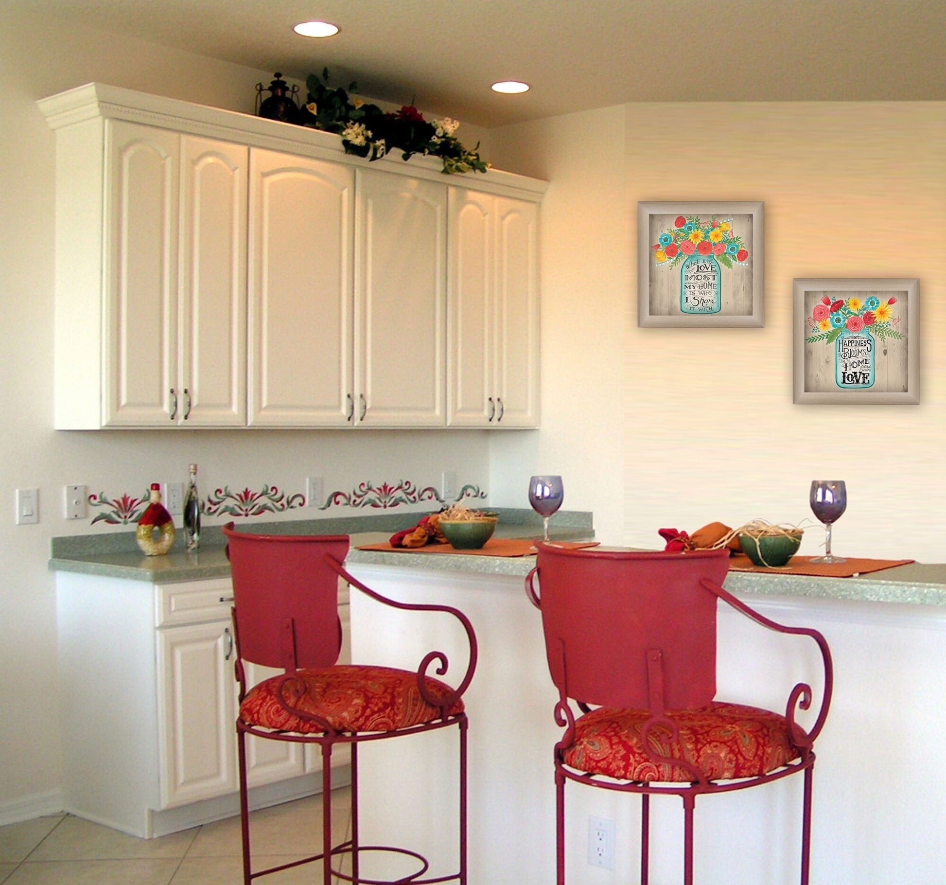 Set Of Two Mason Jar Floral Happiness at Home Brown Framed Print Wall Art