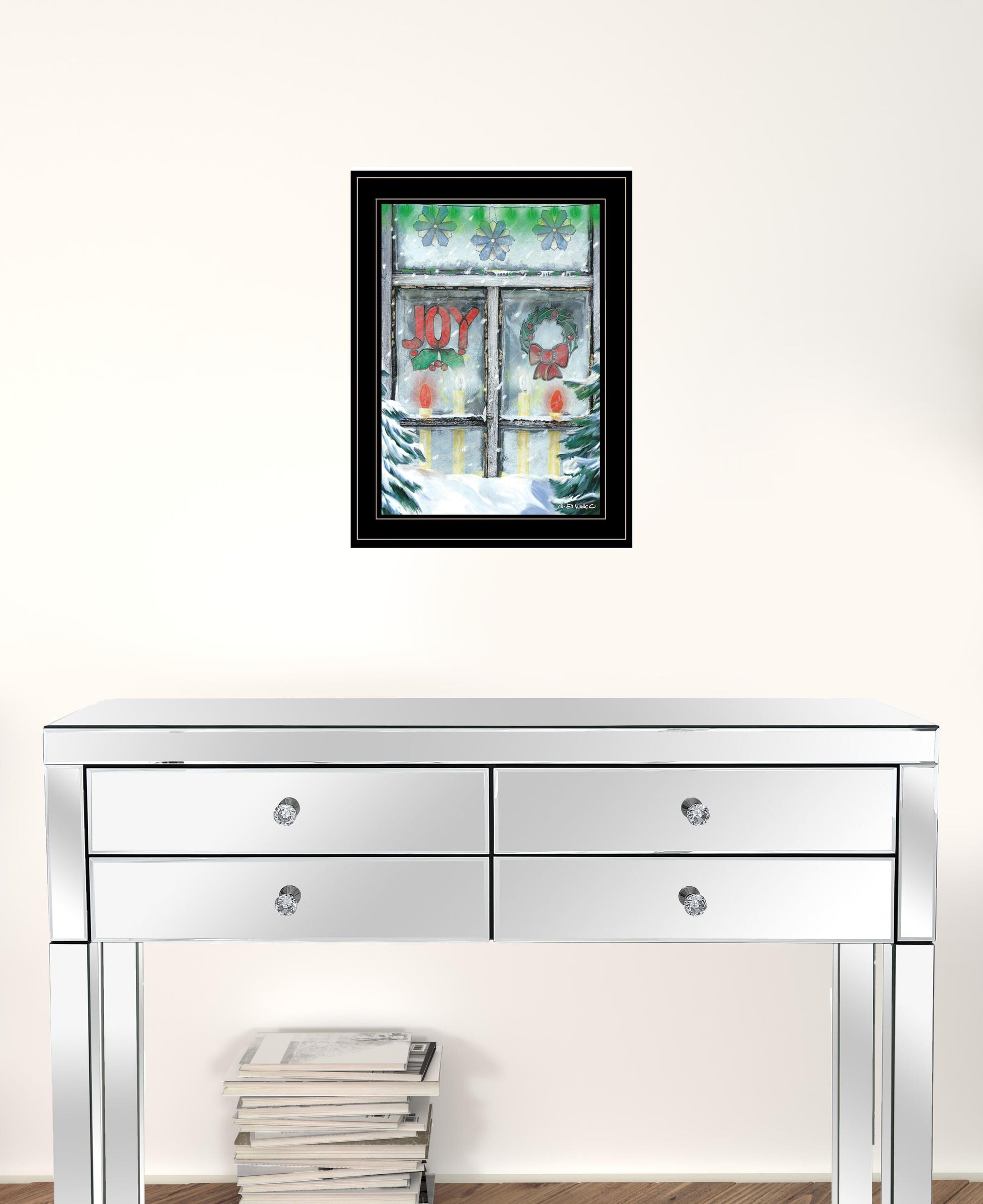 This christmas joy 2 black framed print wall art is a great way to celebrate and decorate for the holidays. This unique and novel shaped art will bring some dimension and artistic design to your wall. This print is a visual artistic expression that allows you to decorate your space in style. Reproduced for you on paper, this hanging decorative accent will be a trendy and fashionable way to dress your walls. Hang on your wall to add some up to date fashion and decoration. Utilize this opportunity to create a focal point in the room with this fabulous wall decor option. 19-inch H x 15-inch W x 1-inch D